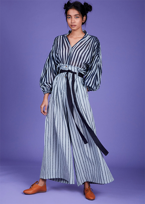 The woman behind this label, Sweta Agrawal, spent her childhood hopping between Rajasthan and Nepal, her ancestral homes. She united the two cultures in her collections, empowering Indian fabrics and advocating for her team of highly skilled workers from the villages of Rajasthan.