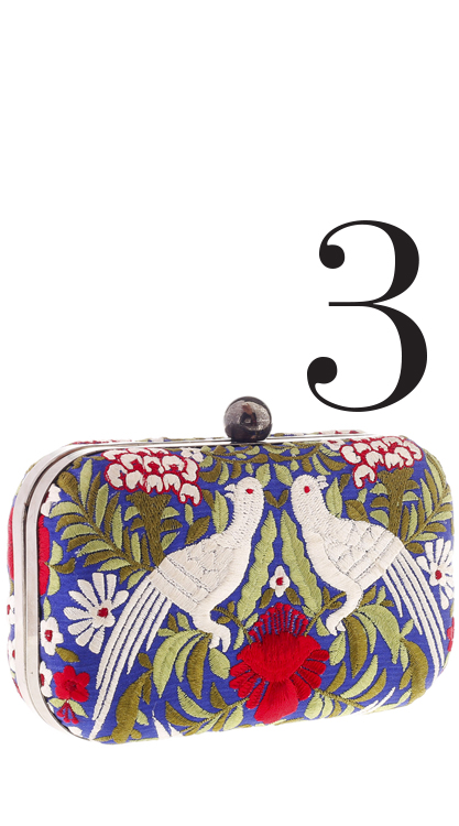 Whether it is your festive ensemble, or your brunch-with-the-girls look, this blue clutch by Malaga adds to the aplomb. Meticulously crafted in raw silk and gara embroidered, it features a single ball frame to take you through the day.