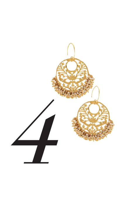 It always helps to have a hint of tradition when it comes to festive jewellery- these hook earrings from Tribe By Amrapali feature delicate filigree work, peacock and leaf detailing along with clustered tiny pearl beads decorated in gold plated silver.