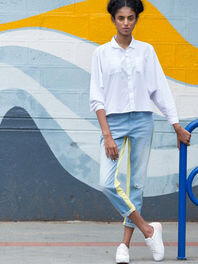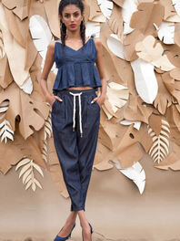 Using only dead stocks, discarded and surplus denim fabric in their collections, The Pigment Edit founder, Deepa Thomas strives to make her label as ecological as can be. “I’ve always had a soft spot for denim my entire career,” shared Thomas. “But denim is considered as one of the most polluting processes in the garment industry. It may sound like the label uses substandard fabric but as Thomas explains, “ A lot of times perfectly good rolls of fabric are discarded as they may have a few defects in the weave and require more time to cut around these blips. We love these fabrics! They add so much more character to our clothes and we know we’re saving fabric that’s going to end up in a landfill.”