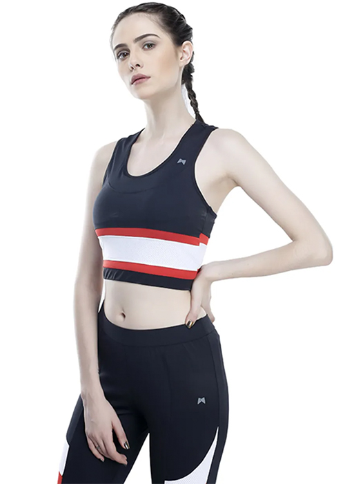 Muscle Torque Black With Red And White Panel Bra Top, Rs. 780