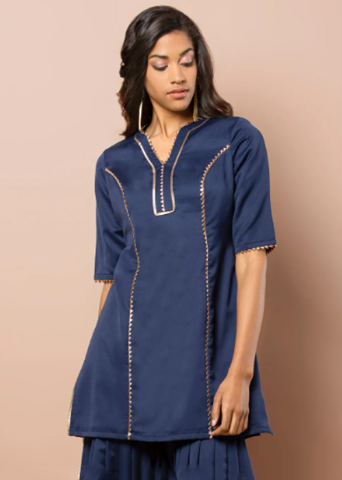 If you think you’ve outgrown your tunic or short kurtas, then think again. Pair your short kurti with palazzos or dark washed jeans for a casual ensemble, perfect for a movie date or a family outing.