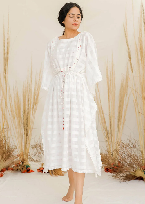 Kaftans, as we know it, are one of the most universally flattering silhouettes as they expertly conceal most problem areas for all the shapes and forms on the size spectrum. Try tops in this silhouette with a pair of pared-back pants for lounging through a lazy day or simply slip into a kaftan dress for a breezy brunch or a beach day– add a belt if you seek definition.
