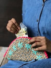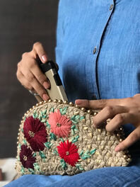 A collection of jute bags embroidered with floral motifs defines this homegrown label. True to its name, Dhaaga Handcrafts employs the traditional method of stitching on eco-friendly fabrics to produce its handbags.