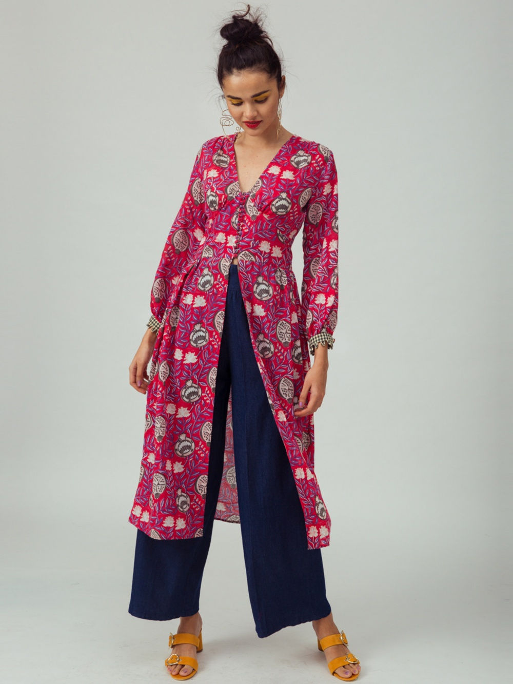 Brunch is all about feminine exchanges, delish food and uplifting moods, dress the part with this peppy piece with bouts of cherry red blossoms interspersed all over. Complete the look with an on-trend bucket bag and a pair of oversized sunglasses.