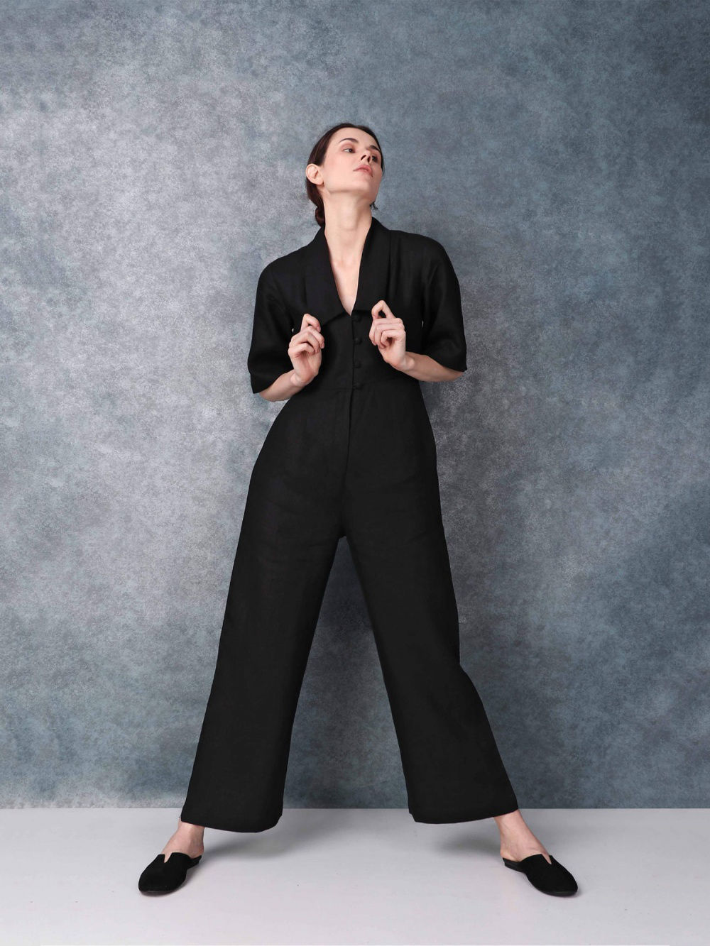 You can’t go wrong with a silhouette as seasonless as the jumpsuit. We recommend pairing it with gilded hoops and strappy stilettos.