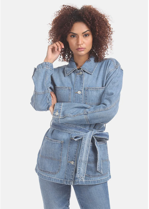 GAP Blue Stone Wash Belted Denim Jacket