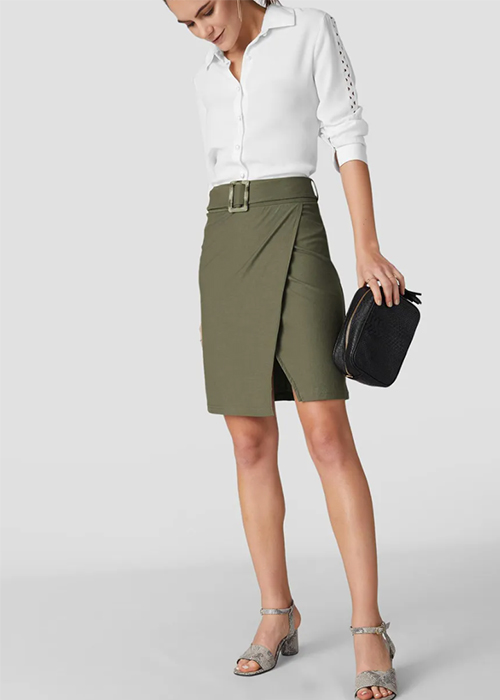 The Label Life Olive Overlap Belted Skirt