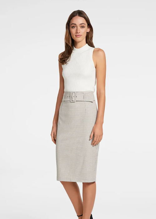 A Christmas classic, belted pencil skirts have a unique way of pairing with sweaters and long-sleeved tops. White we love the classic black & white checkered skirt, you can also try tans, olives and creams.