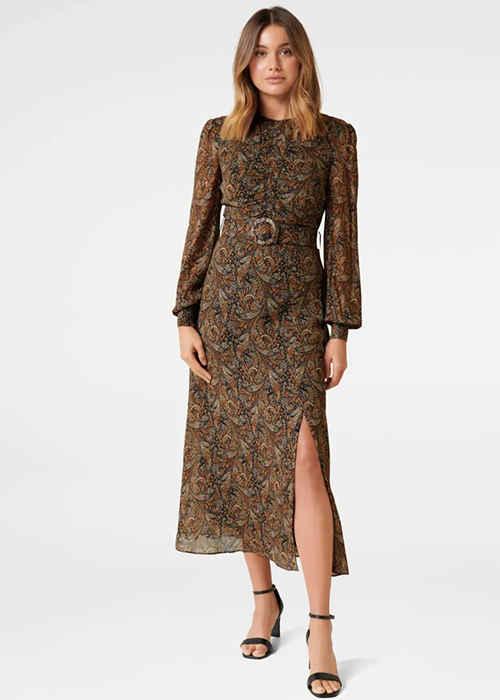 Forever New Midnight Paisley Logan Belted Dress
