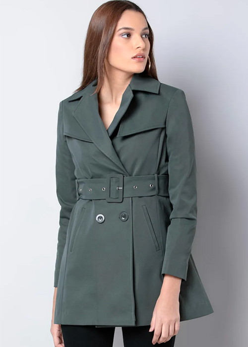 Faballey Charcoal Grey Belted Trench Coat
