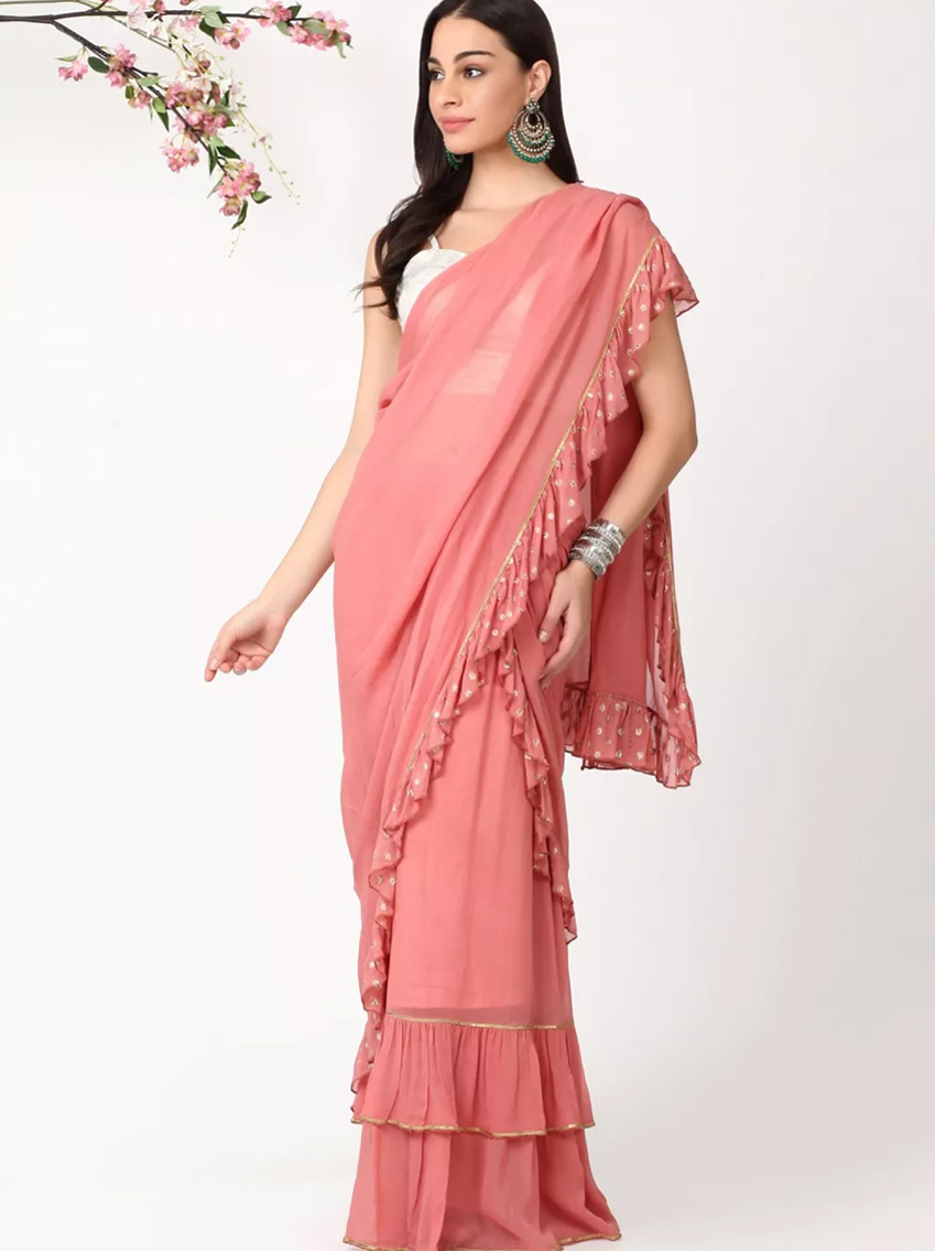 If there’s a silhouette that has shaped the style of Indian women, it’s undoubtedly the sari. Since its origin, which can be traced to over 5000 years ago, the staple has seen many versions. Some are specific to states (there’s Bandhini from Gujarat, kanjeevaram from Tamil Nadu, and of course brocade from Benares) and the others come courtesy of the country’s designers who are always sending out fresh spins on the fluid, unstitched fabric. On our website itself, you’ll find renditions spanning ruffled, monochrome and even one paired with pants. So, just in time for International Women’s Day, we thought we should round up our favourite iterations of the sari – a mainstay in the closets of the country’s multitasking women.
