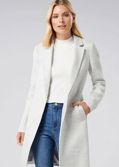 This stylish and formal coat thrown over a plain pullover and a pair of well-tailored bottoms is going to be your new favourite office-outfit.