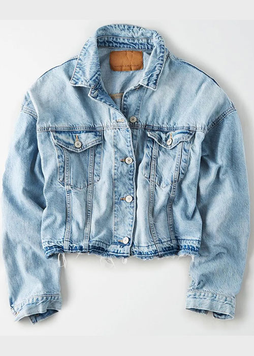 Head out for brunch on pleasant afternoons, in this classic denim jacket thrown over a ribbed winter dress.