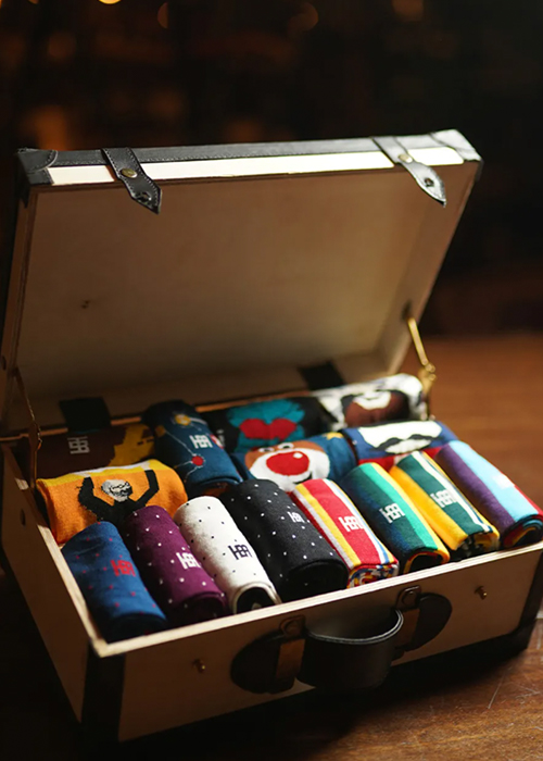 Even the dullest man (read – my father) will agree to wear colorful socks. Fun socks showcase the playful spirit of every man while staying within the rules of formal wear. Check out some flamboyant options with cool graphics or bold colors.