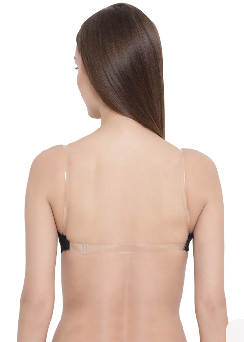 Convertible bra straps that attach to a normal bra and wrap around in the front are tailor-made for dresses with low backs. However, if you are going completely backless, then a bra with transparent bands at the back will give you support, help maintain a natural silhouette and wouldn’t fall off like those adhesive stick-ons.