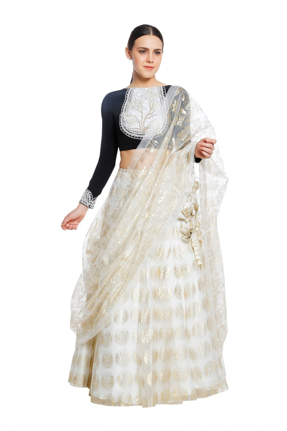 A conversation about trending prints without Masaba- the undisputed master of prints- in it is no conversation at all! She is known to translate myriad objects from day to day life into eye-catching prints that leave an impression on the wearer- we love the vintage glass print on this mustard kurta, the corn stamp foil prints on the black and ivory kurta set and the patchwork of banana prints, corn stamp grid prints, pineapple prints, coin prints and rabbit prints on the black fusion lehenga set.