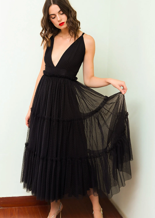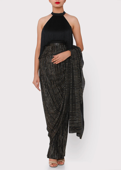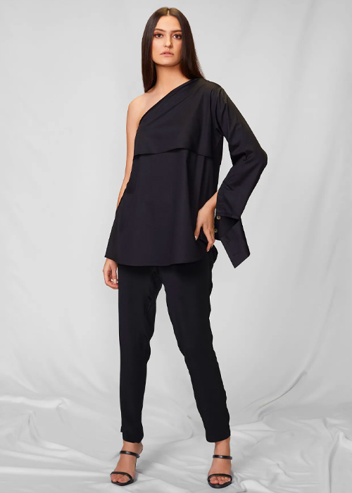As fall approaches, we point to the iconoclastic hue that never goes out of style. If we could write a love letter to this timeless colour, it would read somewhat like this, “Dear black, you’re the midnight monotone that will always remain a mainstay in our wardrobes and there’ll always be a special spot saved for you in our closets but not without reason – you’ve been our closest confidant on days when we’ve not felt the most confident about our bodies and you’ve been our saviour when the question of ‘what to wear?’ haunted us to no ends. After years of leaning on you to pull our looks together, we can rightly confess that you’ve come to be the most hardworking member of our wardrobes – you function round the clock and round the year without tiring out our outfits. Few hues can concoct a no-nonsense yet a well-rounded look for work or the after-hours like you do. While we don’t fully understand what it is about you, you’d be flattered to hear that you possess a certain enchanting quality to instantly uplift our ensembles – it’s as if you are the secret recipe to casting a sartorial spell. May be that’s why fashion icons (both fictional and actual) like Coco Chanel, Christian Dior, Louise Brooks, Rei Kawakubo, Norma Kamali, Morticia Adams, Grace Coddington, Karl Lagerfeld and Holly Golightly among others have had their life-long love affairs with you and so many others continue to do so even today. On that note, we’ll conclude with the promise that you’ll always be on our minds every time we find ourselves in a fashion fix (even when we don’t) and that we’ll never be able to sever sartorial ties with you. Yours truly, loyalists forever.” Did this hit too close to home? Then you can thank us later for what’s to follow. For those of you like us, for whom nothing but the inkiest hue will do, we’ve rounded up the chicest iterations from the website so that you never have to bid farewell to your beloved black. Scroll down to shop!