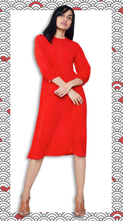 This season move away from the staple hues reserved for work wear and let your inhibitions break through with this minimal shift red dress by AND. Try some belting for a more serious approach or stick to tiny trinkets when it comes to accessorizing as red is an expressive colour in its own and you don’t want to overdo it.