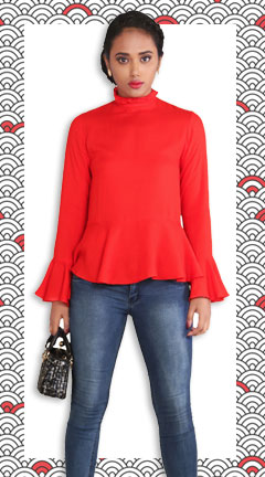 Wearing red is always a good idea this season, even if it’s just for a slow-paced day when all you’ll be doing is running errands or catching up with your friends. This full-sleeved red peplum top by Knotty Tales will pair well with regular denims while keeping you on-trend and on point!