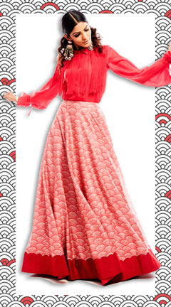 Hear hear bridesmaids! The bridal season is around the corner and the good news is that you can wear red too! Even if you’re not the bride! This stunning new-age lehenga choli by Ridhi Mehra shows you just how. Grab a pair of heels and put on some statement ear candies because it’s your time to shine!