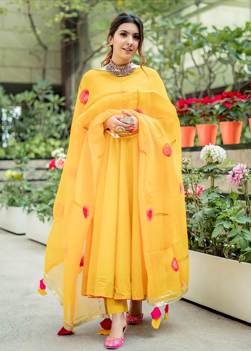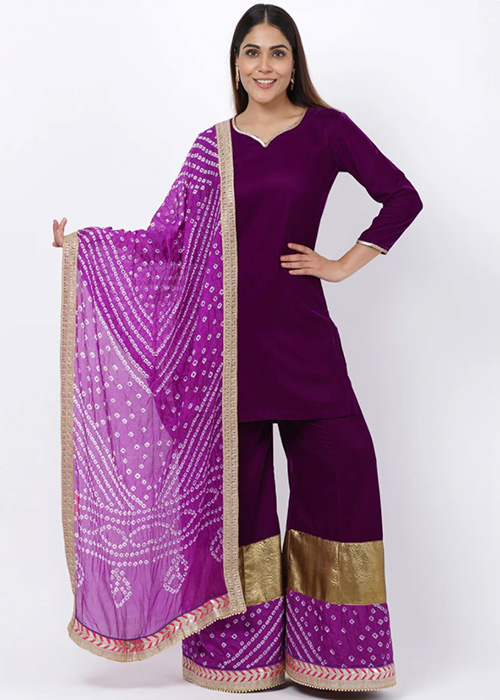 Suit set – Thread & Button, 4,050 Bandhani If you love tie-and-dye then this craft is sure to find favours in your wardrobe. This traditional Rajasthani and Gujarati printing technique involve creating concentric circles with the help of tying threads and then dyeing the fabric. A popular choice for festive occasions, this bright and lively crafts looks great when worn on almost any silhouette, both Indian and western.