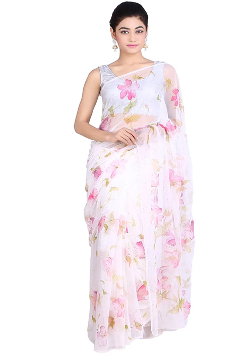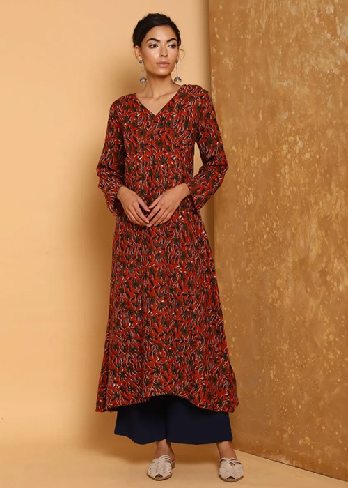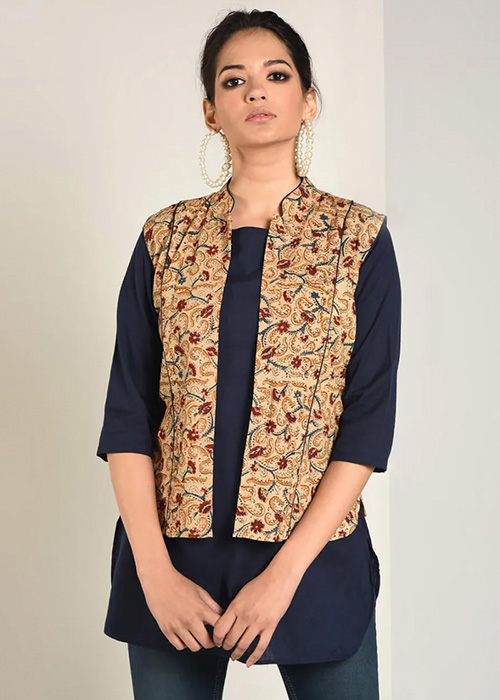 Tunic with jacket – Abhishti , 2,160 Hand Painting Native to Rajasthan, this form of hand painting process is quickly becoming popular among the fashion fraternity. Typically hand painting delicate floral patterns on gossamer fabrics makes it a craft to covet. We think the craft looks equally refined on dupattas and sarees that lend it the extra flow.