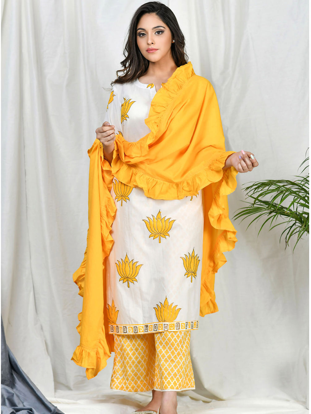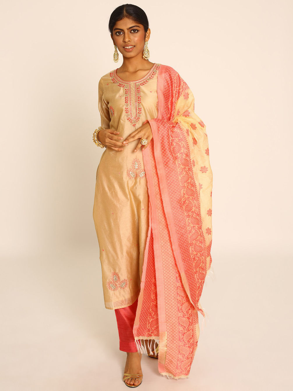 What we love most about Zumaira is their ruffled and sequined dupattas that dress up otherwise simple kurtas you can save for 9 to 5.