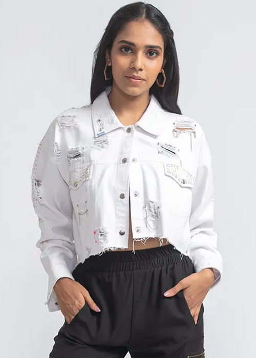Drape your saree with this oversized, distressed denim jacket for a street-style look, especially when you’re headed for a day out with your girls.