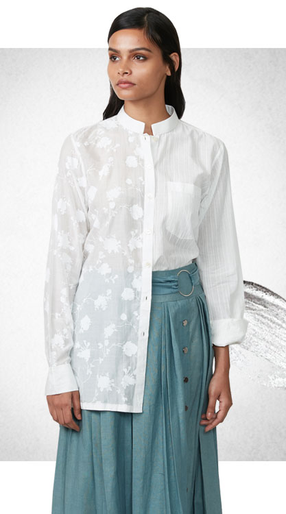 What is a complete wardrobe without a crisp white shirt? Your best bet for dull days, white shirts like this conversation-starting number from Pinnacle by Shruti Sancheti is compatible with any pair of trousers of your choice- ticking off all the right boxes!