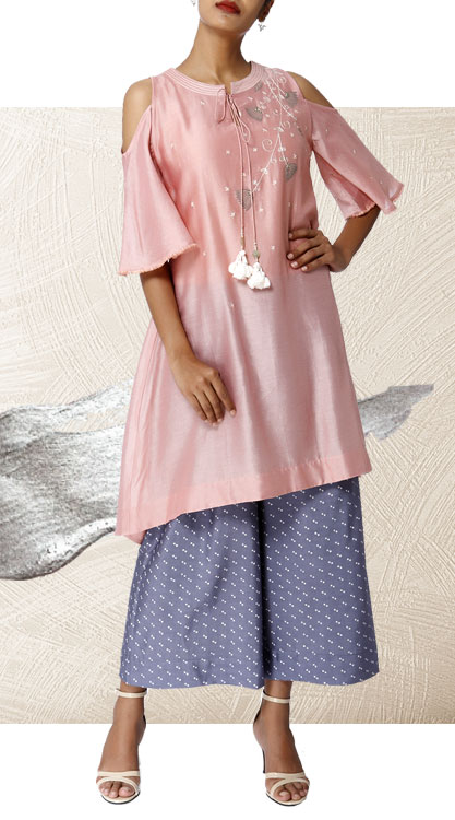 Bare shoulders are not going off-the-trend grid anytime soon and this blush pink number by AND is a staple winner. Team it with pastel bottoms or stick to classic denims and own the daytime-chic look.