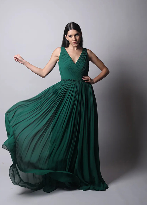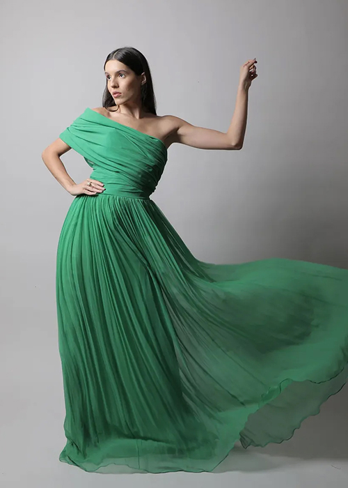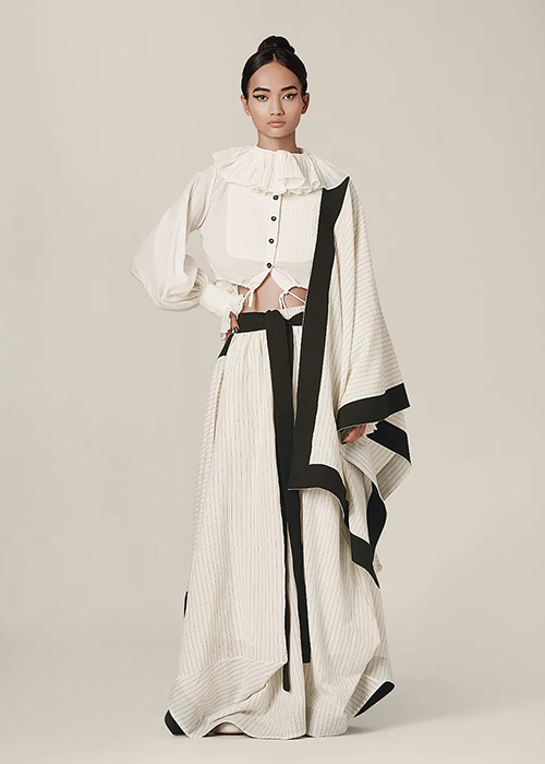 Chola’s clever tailoring and innovative patternmaking are a study in their own right. Each outfit adds drama and frivolity. Flattering cuts in geometric shapes offer a sense of abandon.