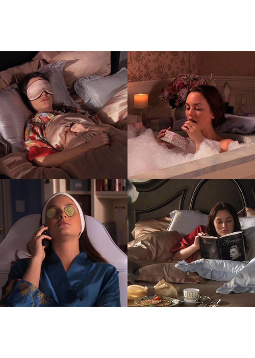 Blair Waldorf knows how to pamper herself and we’re taking notes. What better way to self-isolate than in satin sleepwear with your favourite macaroons and Netflix series by your side?