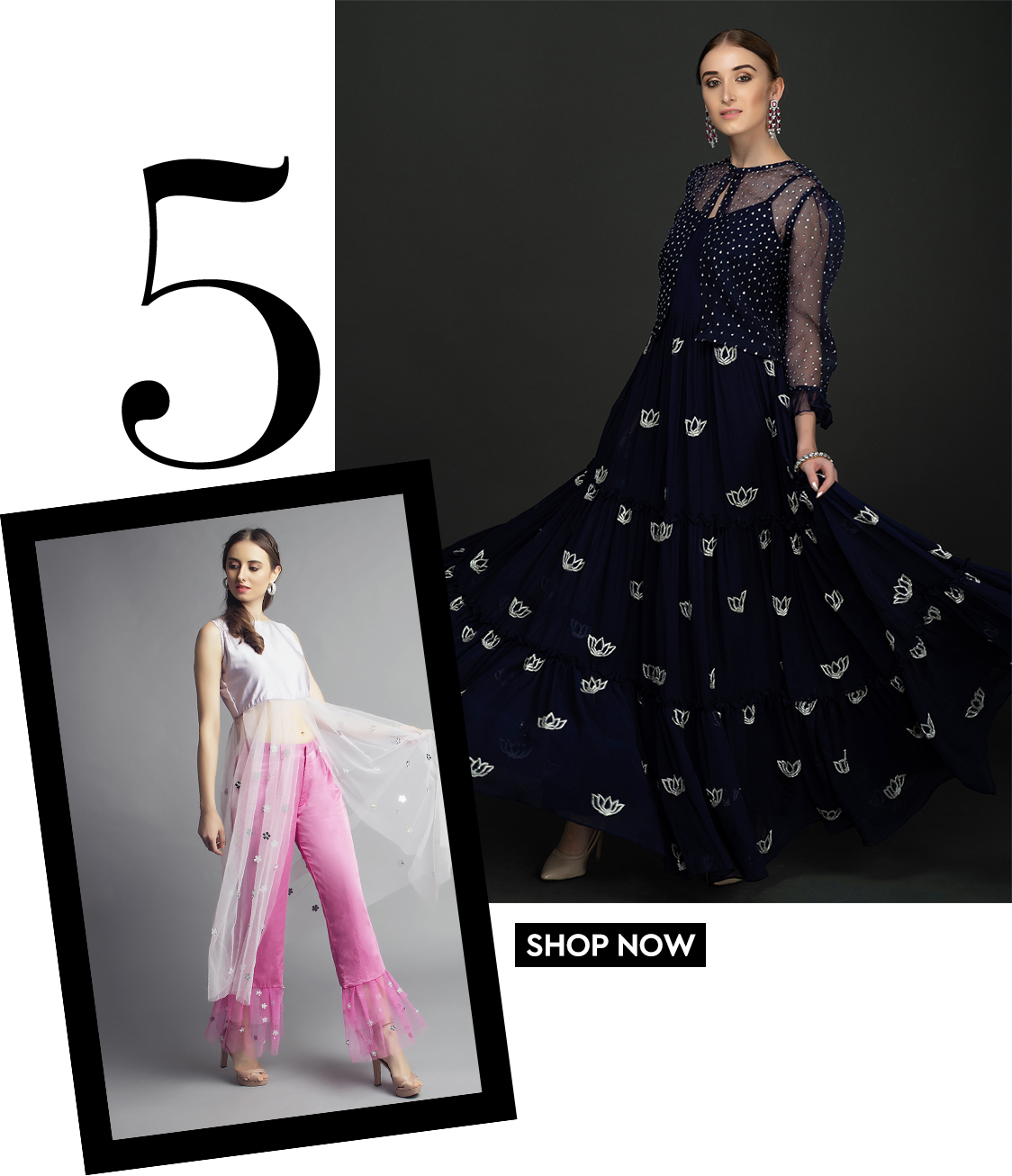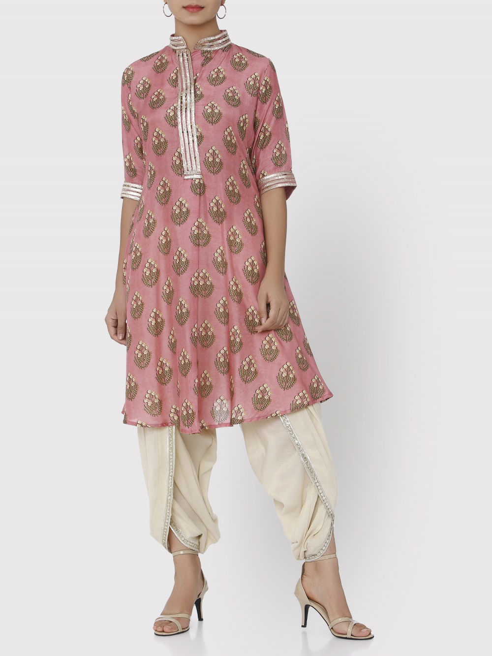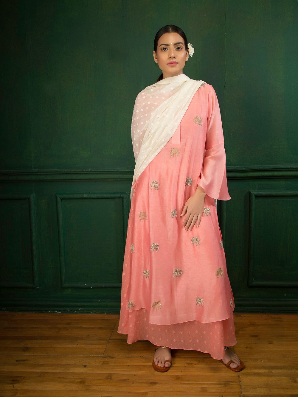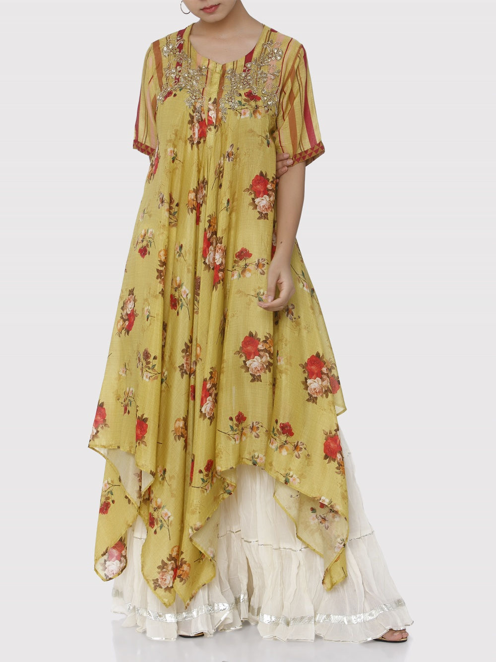 Headed by Mumbai based designer Gopi Vaid, this brand’s collection ranges from everyday kurtas, palazzo pants to tunics and veers towards a bold and glamorous aesthetic. Her style of mixing florals with gotta patti work will have you swooning over, in just the first look!