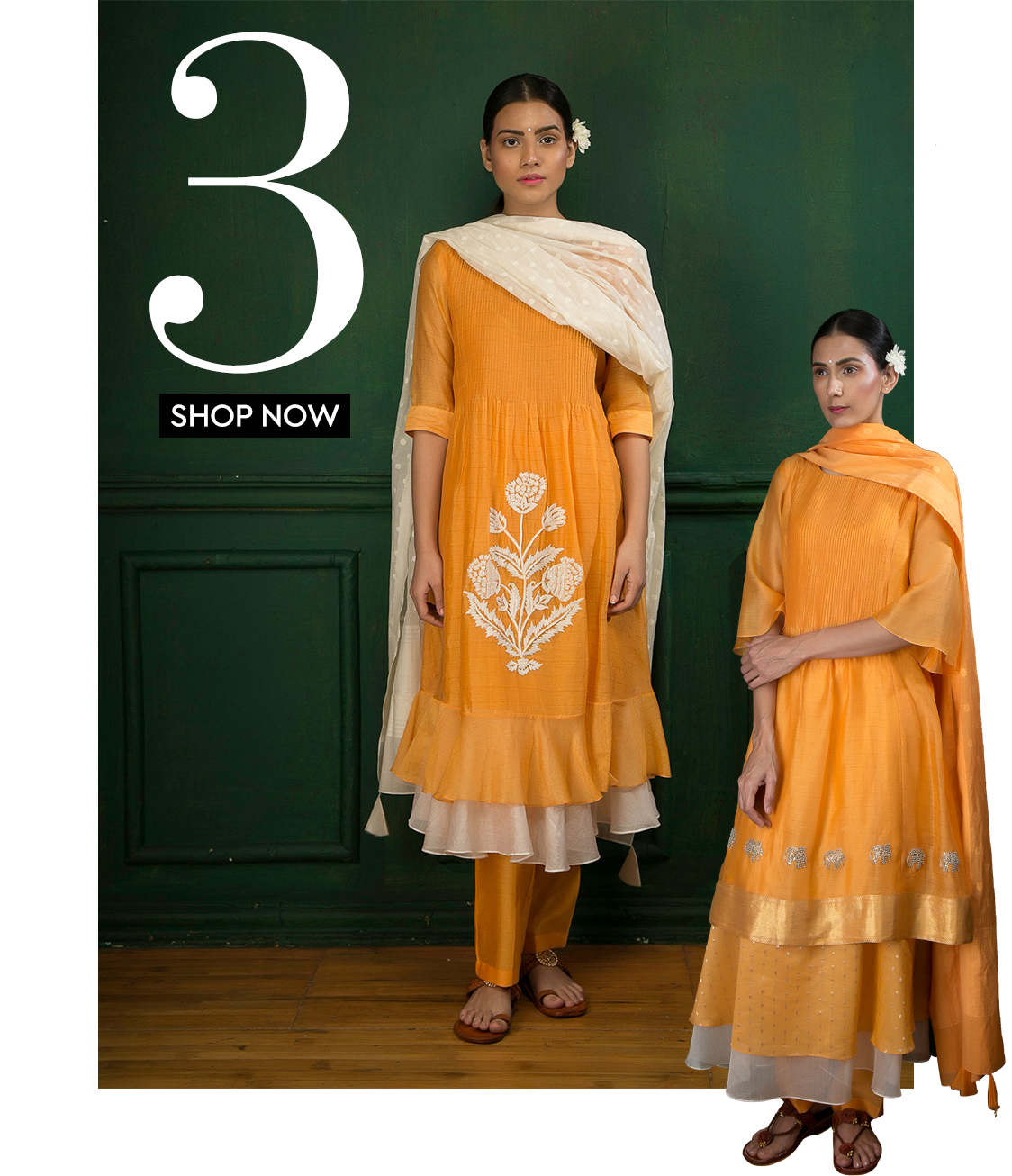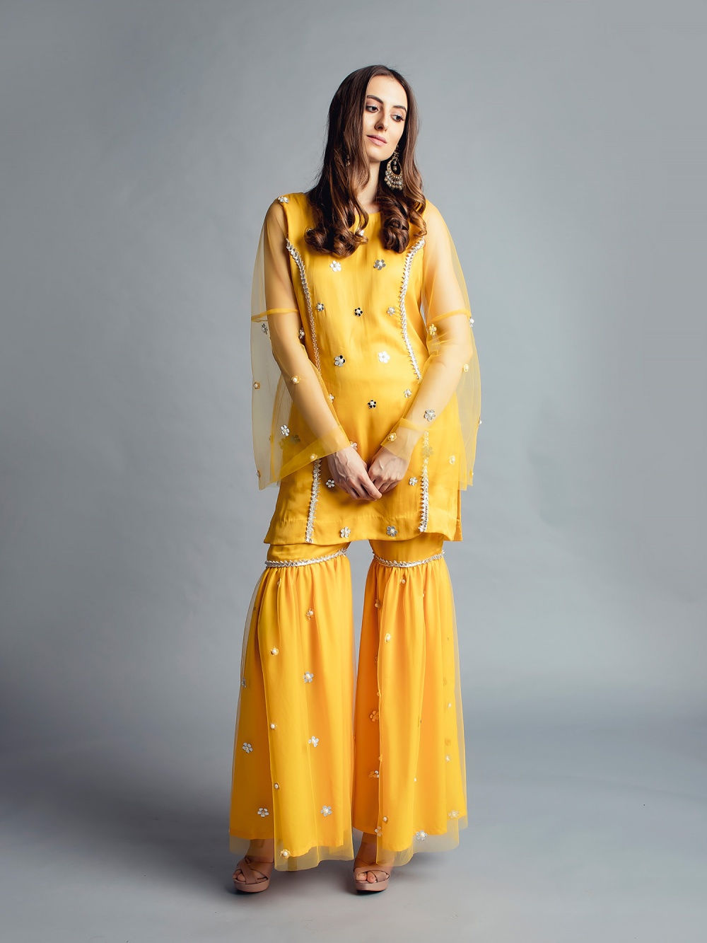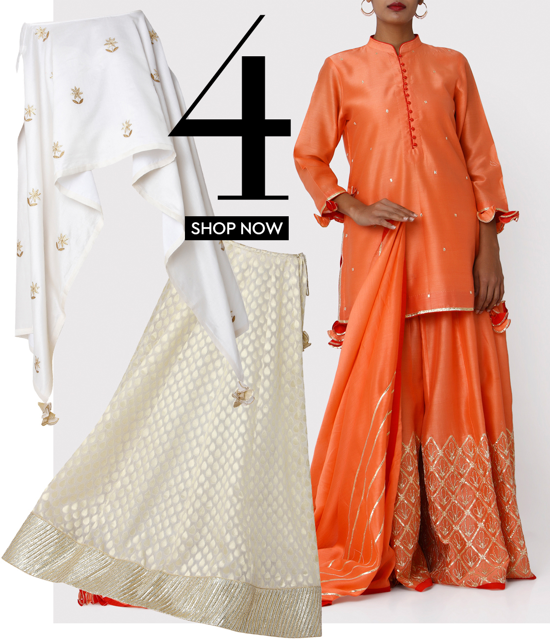 Headed by Mumbai based designer Gopi Vaid, this brand’s collection ranges from everyday kurtas, palazzo pants to tunics and veers towards a bold and glamorous aesthetic. Her style of mixing florals with gotta patti work will have you swooning over, in just the first look!