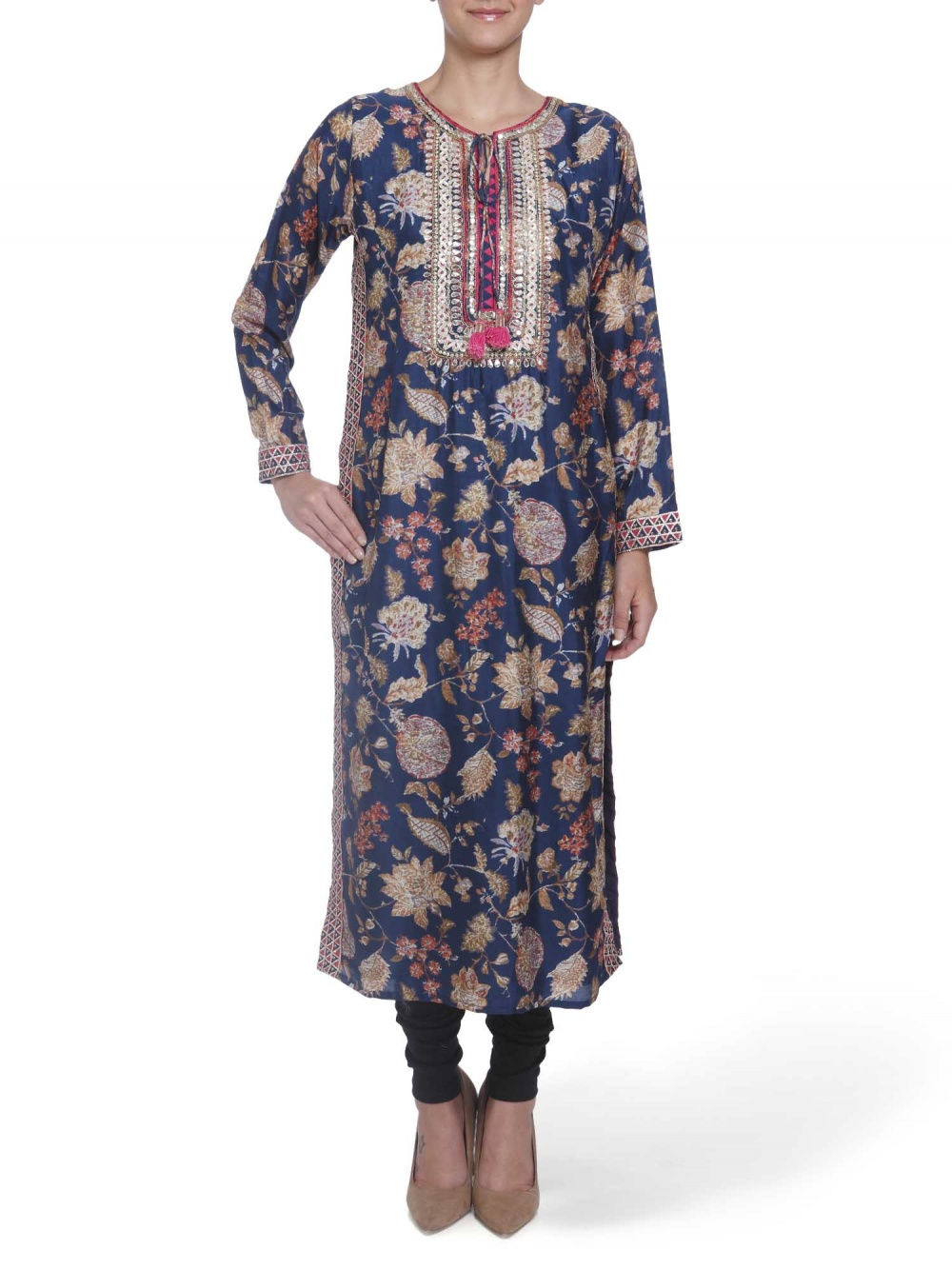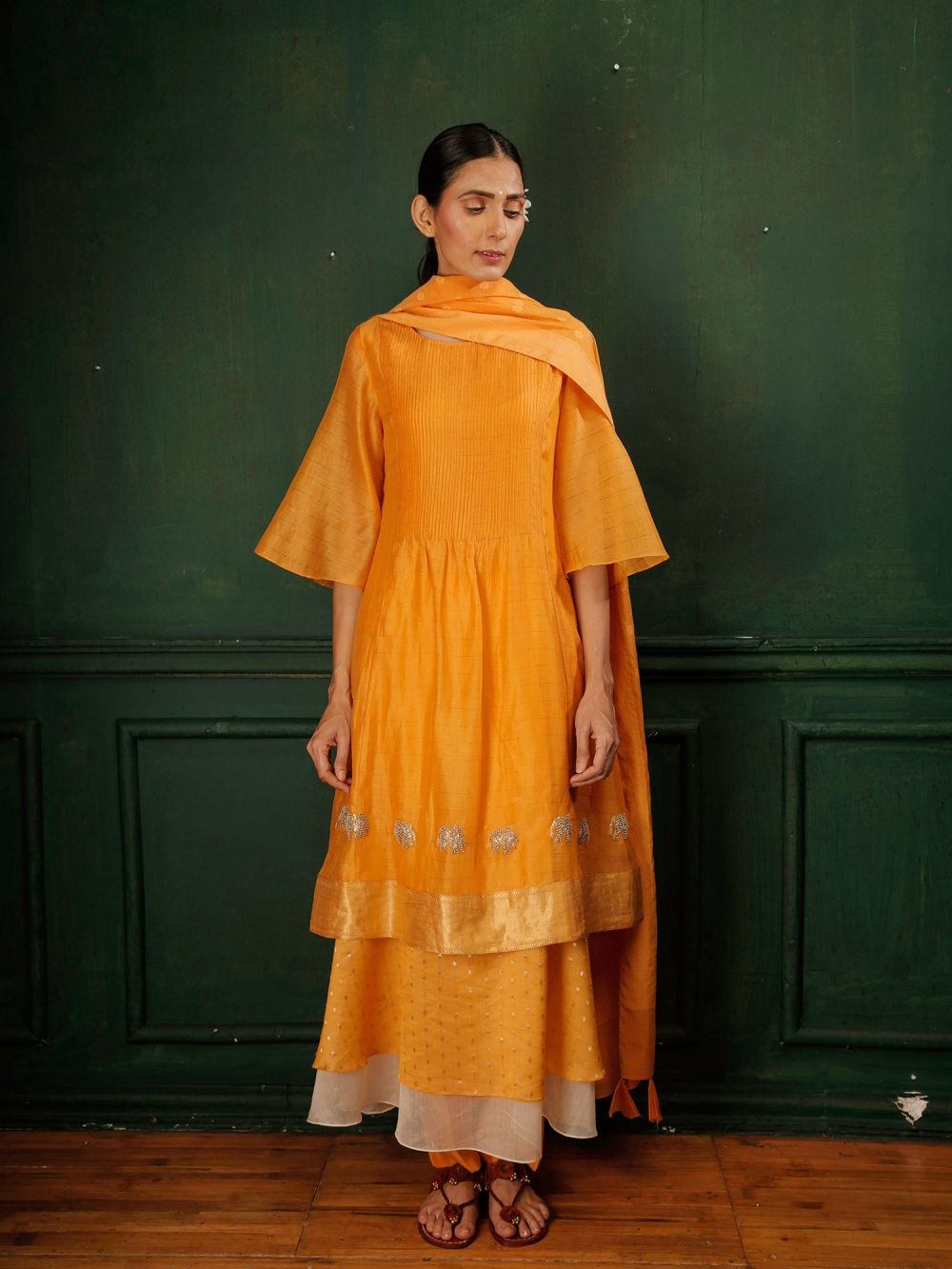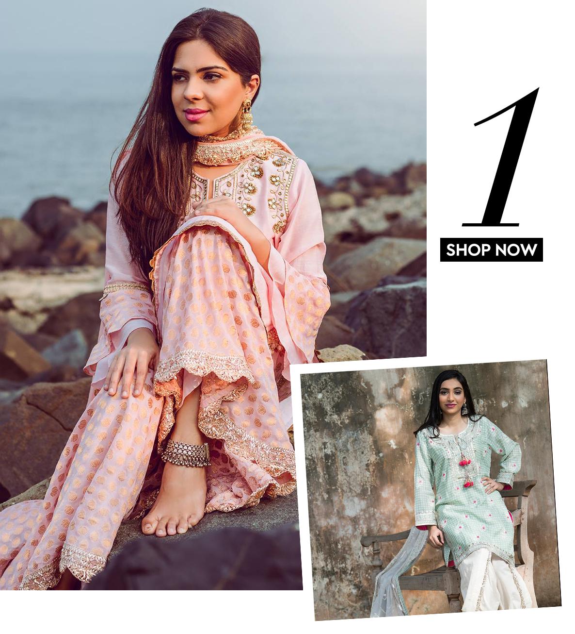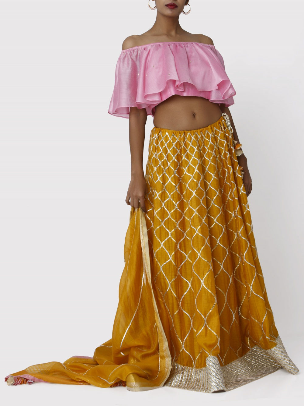 Headed by Mumbai based designer Gopi Vaid, this brand’s collection ranges from everyday kurtas, palazzo pants to tunics and veers towards a bold and glamorous aesthetic. Her style of mixing florals with gotta patti work will have you swooning over, in just the first look!