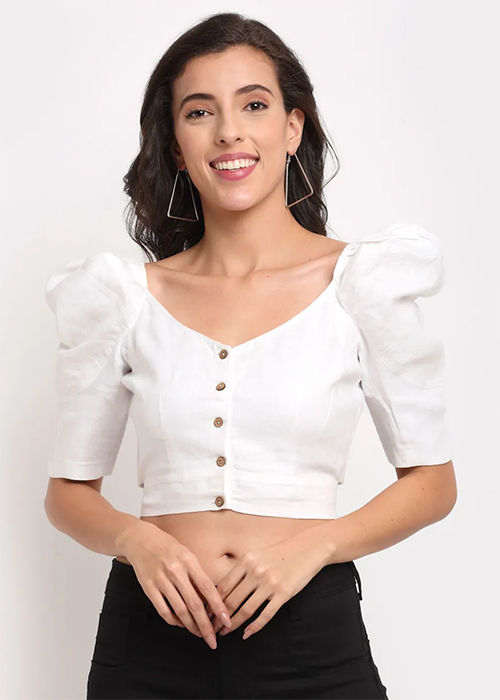 White Solid Crop Top