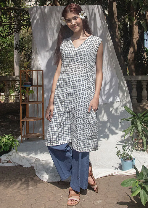 White Checkered Kurta