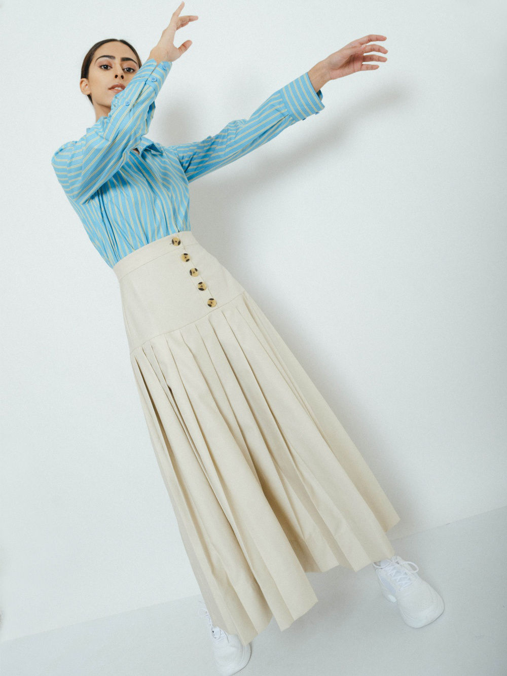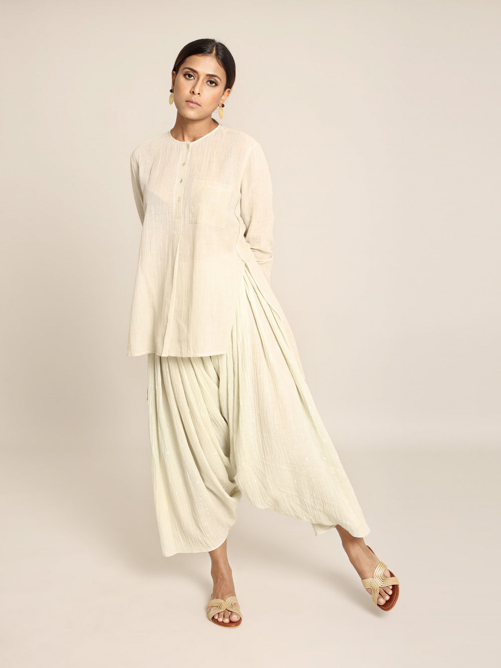 The material polishes or demolishes the outfit. Think the softest cottons for the day and sultry silk shirts for meetings or even date night. The rule to remember: when the silhouette is simple,bring the fabrics in focus.