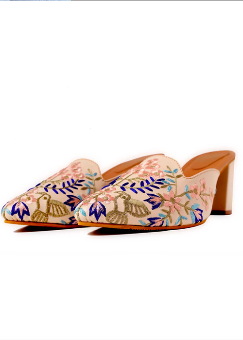 9. Pink Paisley By Arpan Sachdev Embroidered Beige Heels