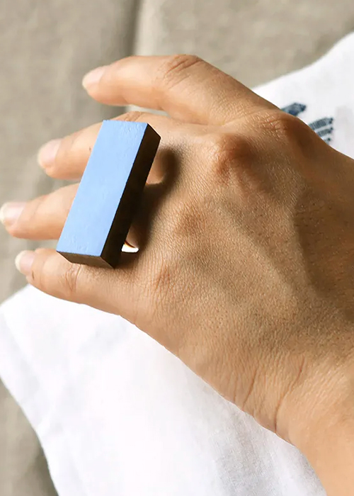 The jewelry crafted by SATAT is handcrafted from reclaimed teak wood following a time honored process.