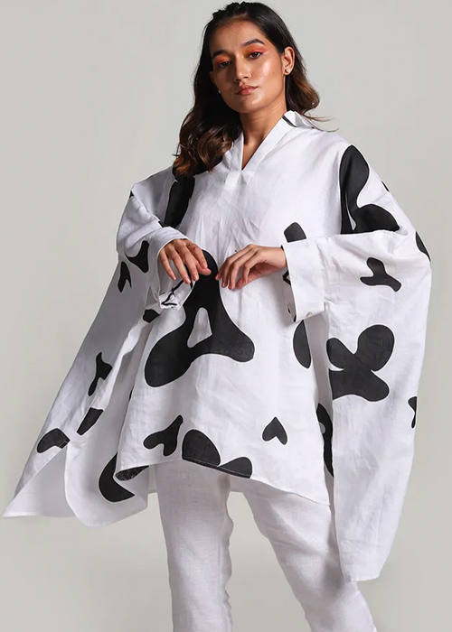 Nothing spells comfort like the combination of a kaftan and a pair of pared-back pants. Try this duo to make monochrome magic.
