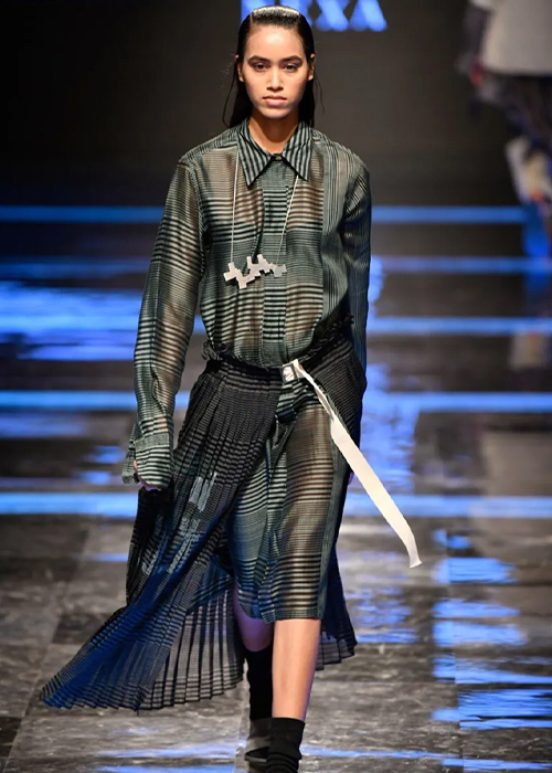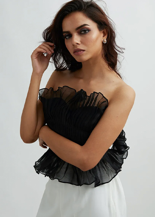 If you’re not the one to shy away from a sartorial experiment or a two, lean on this pleated sheer skirt to become the best bud to these trousers.
