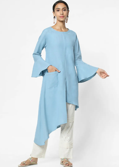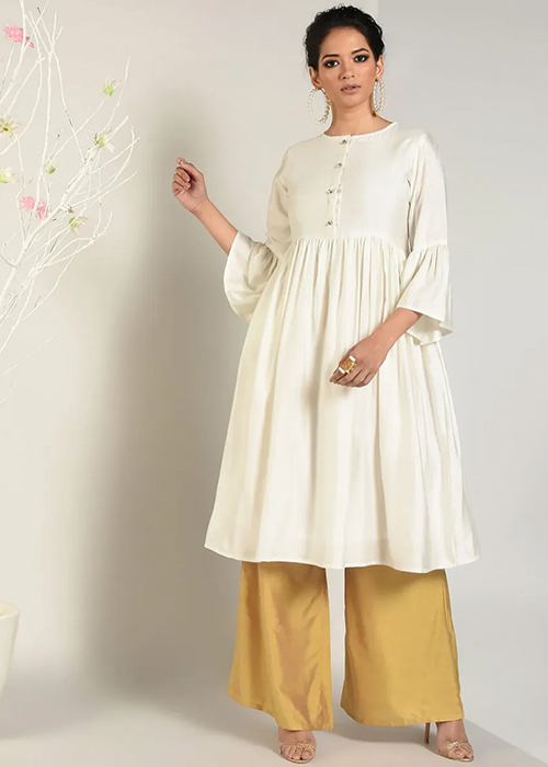 With a fit-and-flare soft silk kurta, the pants tread into the traditional territory. Add a pair of oxidized silver earrings to hit the sartorial sweet spot.