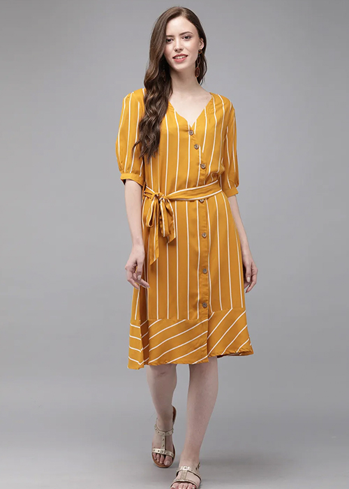 No better way to give the dress-over-pants trend a try – pair this mustard shirt dress, unbuttoned up till the navel with these pants to create a statement-making ensemble.