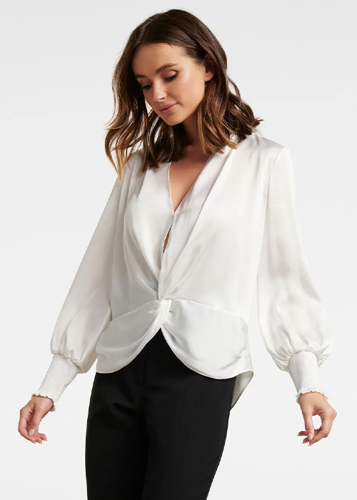 With this crisp white blouse, the pants turn into functional-yet-fashionable formals.