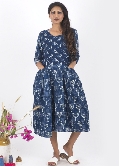 I think the trend of Indigo came in a whirlwind and swept everyone off their feet. But it was one of my school teachers who made me fall in love with Indigo Dabu prints. She had white pixie cut hair that clashed with her smart cotton Dabu saris. The prints somehow enhanced her entire aura, her posture, her smile. I remember buying Indigo hued Dabu printed fabrics and at one point my entire wardrobe looked the same. I still love chic, yet earthy Dabu dresses and kurtas!