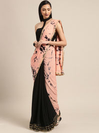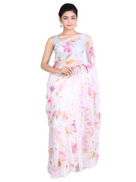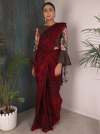“The sari makes me feel badass and stands as an example of pulling off difficult things with ease!” says Irani who, like most twenty-somethings, stumbled upon the world of saris by more of a chance and less of a choice, “Because I’m a Parsi, when I entered my teens, I had a sari pervanu ceremony in my house with all my friends and relatives who came together to embarrass me. I vividly remember, standing in a blouse and petticoat on stool while everyone had their eyes on me, and I had to wear the sari in front of them. I can never delete that day from my memory,” she says. The said episode might not have been her most fond one but it did leave Irani wanting to wear the sari more often. Albeit wrapping herself in the ‘restrictive’ silhouette on the daily still remained a farfetched possibility, she decided to commit herself to sari for all occasions that called for a traditional dress code, even if it meant wearing a readymade version of it. Then again, are you even a millennial if you don’t add new-age applications to every outfit you own? And so she did too, to all her and her mother’s saris, after all, it went well with her street-cred cool image, “I can proudly say that the one thing I can do in a sari that no one else can is pull it off with a pair of sneakers and dance in it with reckless abandon for a whole night,” says Irani.