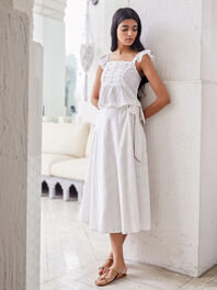 I’m taking the opportunity of this downtime to try out the ‘stick of butter’ dressing with pared-back pieces that follow the classic colour code of comfort: white and khaki. I also lean on cute hair accessories and stackable jewels to lift up my living-in look. Such easy additions not only help me to ace that waist-up dressing for all the conference calls I have to take but also boost my mood and keep me motivated to work through and through. Lastly, nothing like a pair of easy slip-on sandals to complete my look for my at-home desk.