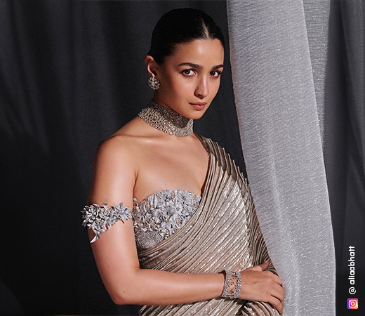 Synonymous with glamour and oomph are the off-shoulder blouses. Alia Bhatt has effortlessly incorporated this trendy style into her ethnic wardrobe. This design adds a modern twist to traditional outfits, making them perfect for contemporary occasions. Team them up with high-waisted skirts or palazzos for a chic ensemble. The silhouette also beautifully accentuates your collarbone and shoulders, making space for jewellery. Accessorise with a statement neckpiece and a high bun to exude red-carpet elegance at any event.